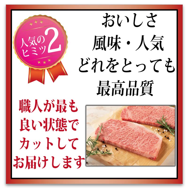 おいしさ、風味、人気どれをとっても最高品質のサーロインを1枚200gのステーキにしてご提供いたします。