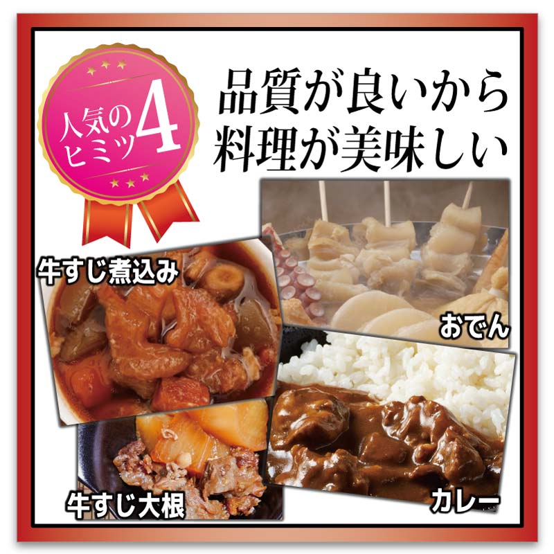 | 部位 | 牛すじ(アキレス、白すじ、引きすじ等) |